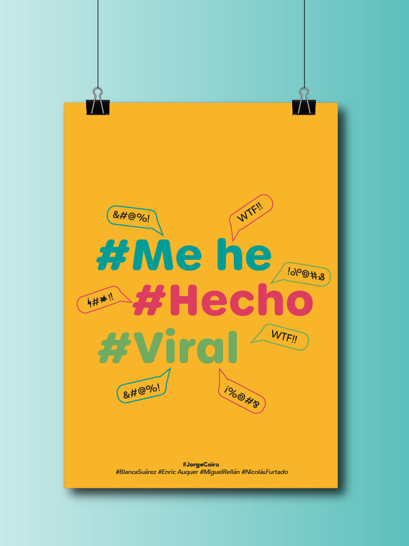 Cartel de la pelicula Me he hecho viral, para la asignatura de tipografia en el curso 3º EESS Diseño gráfico. Realizacocon solo tipografia y colores vivos para representar los valores y la esencia de la pelicula